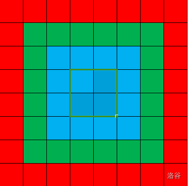 我们观察和研究一下替换的范围:所有坐标数字 \((x,y)\) 大小满足 \(i\) ~ \(n-i+1\) 的,都要替换。有点难理解?我们可以稍微模拟一下。