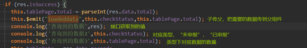 在判断类型与当前tabs选择的类型相同后,把对应的数量赋值给当前选择的list下的total