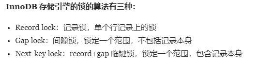 另外如果当前读,每次都读取最新的数据(加锁),如果两次查询中间有其他事务插入数据,就会幻读。(加锁也只是对行加锁)因此需要对间隙也加锁,锁定间隙不让插入新数据。