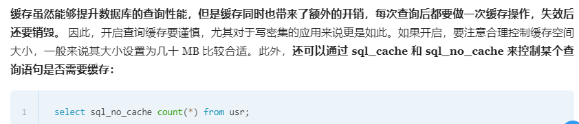 (查询缓存不命中的情况:(3)缓存建立之后,MySQL 的查询缓存系统会跟踪查询中涉及的每张表,如果这些表(数据或结构)发生变化,那么和这张表相关的所有缓存数据都将失效。