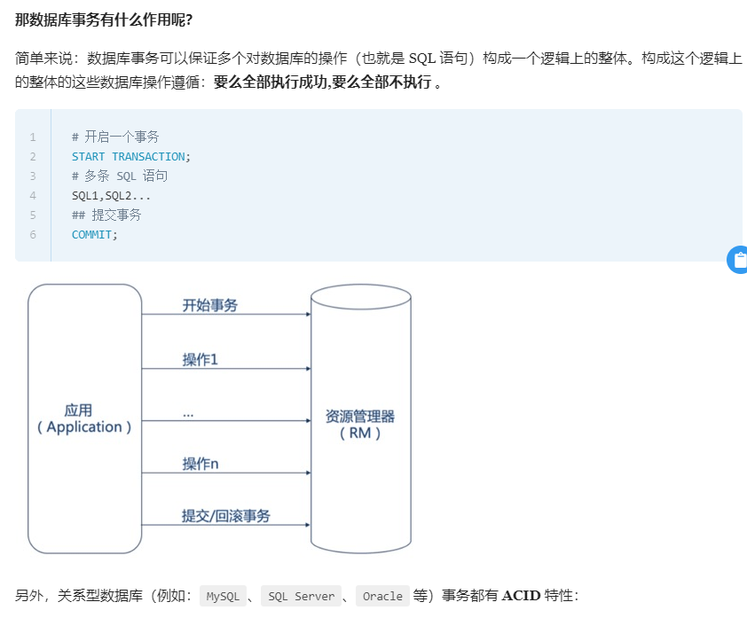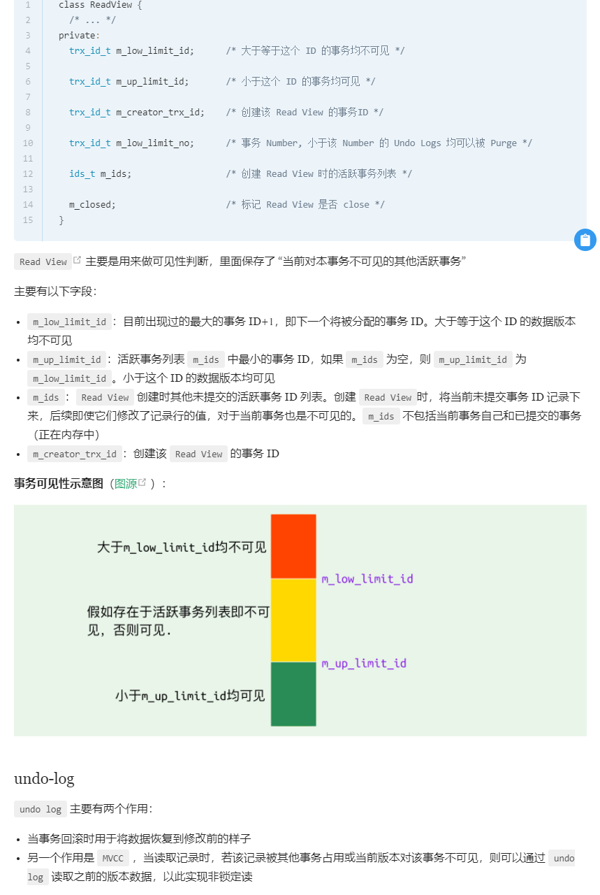 - MySQL InnoDB 引擎使用 redo log(重做日志) 保证事务的持久性,使用 undo log(回滚日志) 来保证事务的原子性。