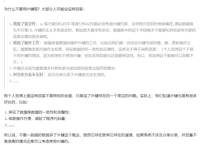 为什么不使用外键会对一致性造成威胁:大概就是如果设置了外键,进行修改操作会有限制。