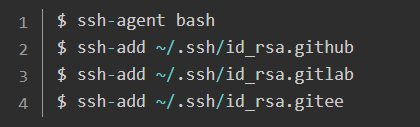 默认只读取 id_rsa,为了让 SSH 识别新的私钥,需要将新的私钥加入到 SSH agent 中