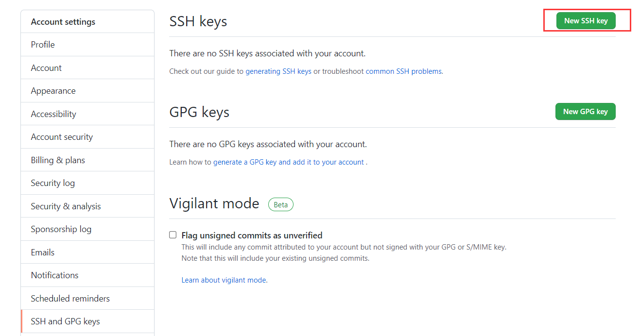 直达地址:https://github.com/settings/keys