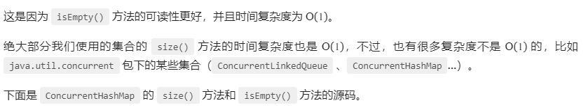 1、判断所有集合内部的元素是否为空,使用 isEmpty() 方法,而不是 size()==0 的方式