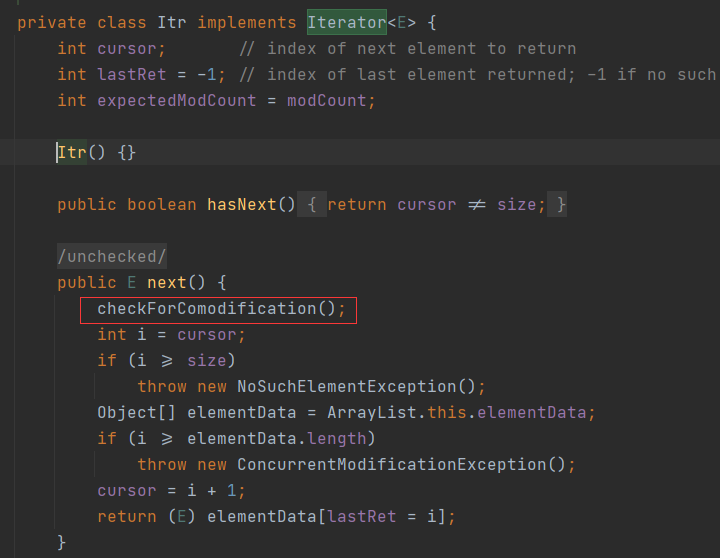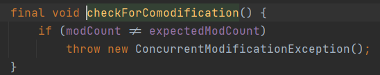 ArrayList 类里面有一个modCount,只要是涉及了改变ArrayList元素的个数的方法都会导致modCount的改变。从而导致和迭代器里面的expectedModCount不一致而抛出异常。Iterator迭代器自己改变元素的时候exceptedModCount才会改变。比如调用迭代器的add和remove方法。