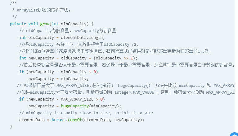 ArrayList每次扩容都会变为之前的1.5倍左右,除非小于最小需要的容量,如果小于,那么以最小需要的容量为准。