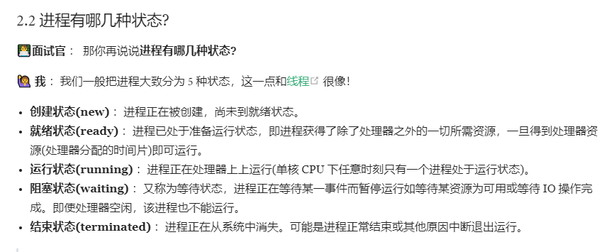 进程是程序的一次执行过程,是一个动态概念,是程序在执行过程中分配和管理资源的基本单位,每一个进程都有一个自己的地址空间,至少有 5 种基本状态,它们是:初始态,执行态,等待状态,就绪状态,终止状态。