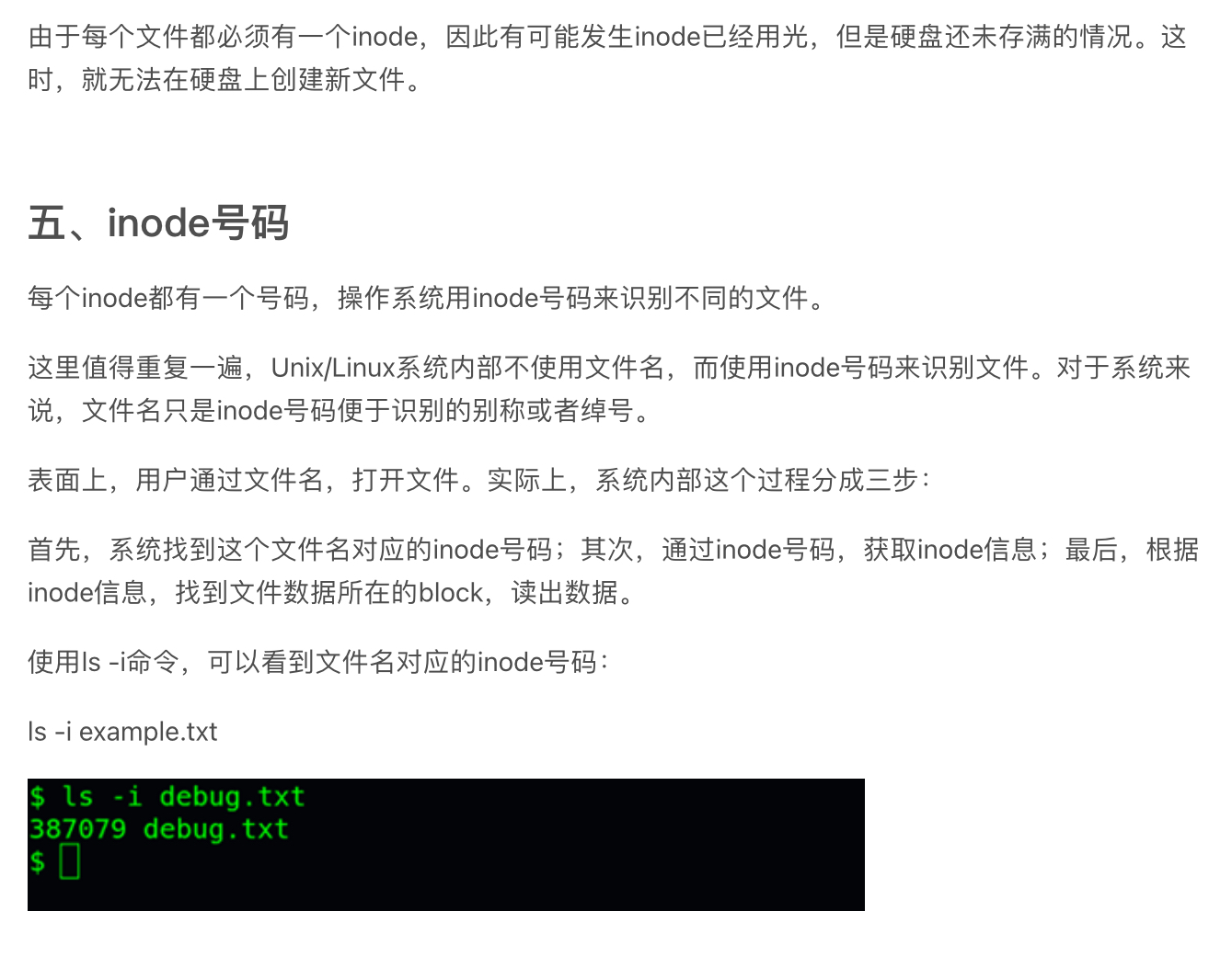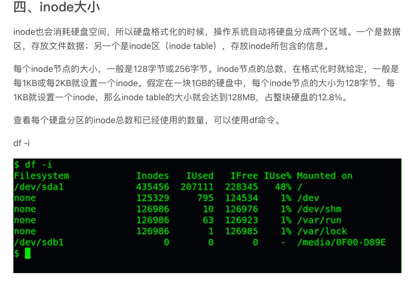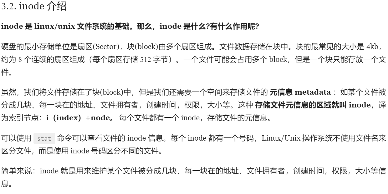 inode类似于文件头,包含了文件元数据。
