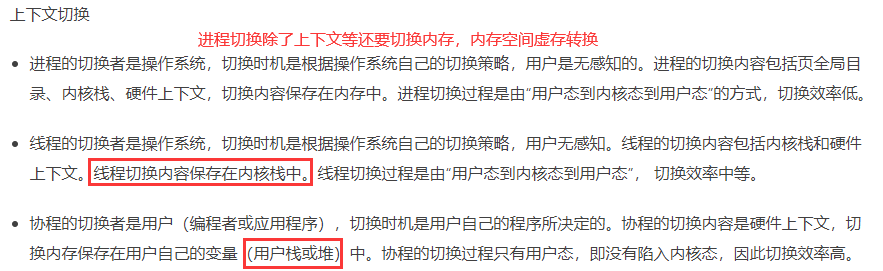 1、协程不是被操作系统内核所管理的,而是完全由程序所控制,也就是在用户态执行。