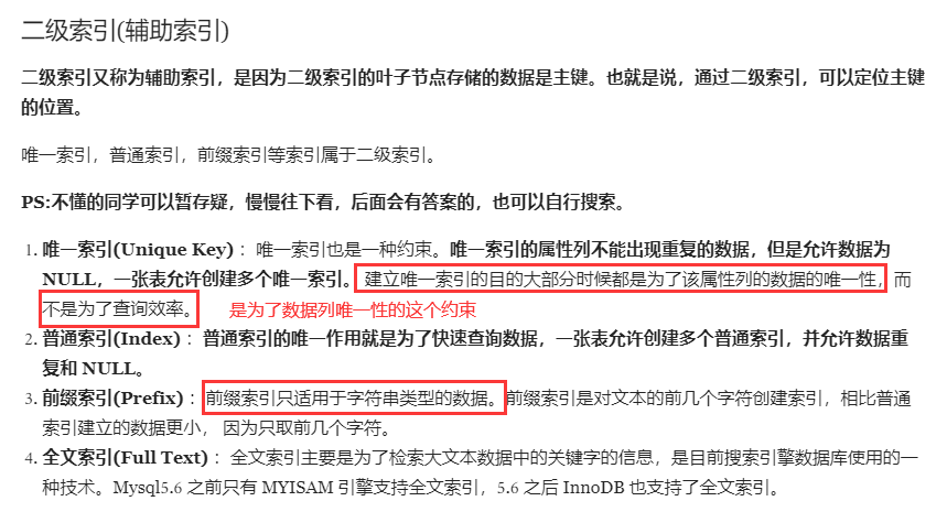 非聚集索引即索引结构和数据分开存放的索引。