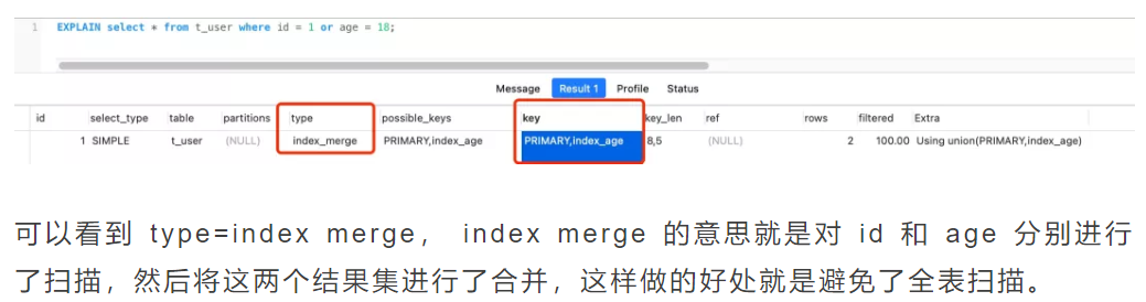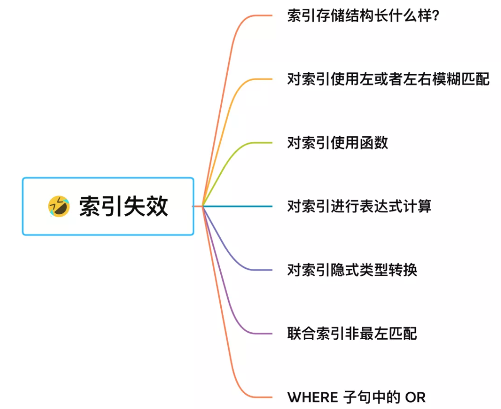 or语句为啥不走索引:select * from t_user where id = 1 or age = 18; age没有索引,这种情况才会索引失效,因为or是2者满足一个即可,都要检索。解决办法:age也建立索引即可。