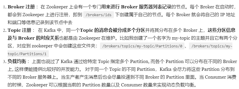 ZooKeeper 主要为 Kafka 提供元数据的管理的功能。