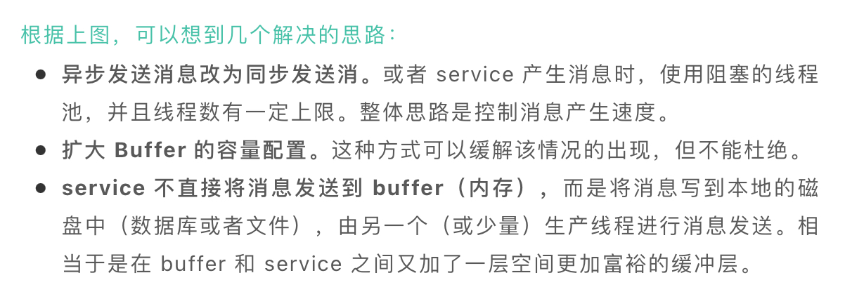 2 其次,才是排查解决异常问题。比如通过监控和日志等手段分析是否消费端的业务逻辑代码出现了问题,优化消费端的业务处理逻辑。