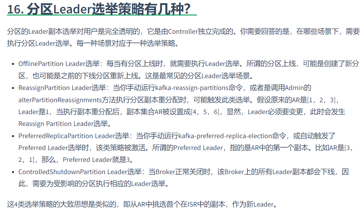 Kafka的Leader Election方案在所有broker中选出一个controller,所有Partition的Leader选举都由controller决定。
