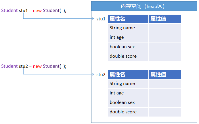 Student stu2 = new Student();//创建Student对象并为 stu2引用赋值