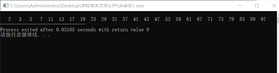 1、调试程序:输出100以内所有的素数(用函数实现)。