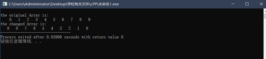 2、 调试程序:对一维数组中的元素进行逆序排列。