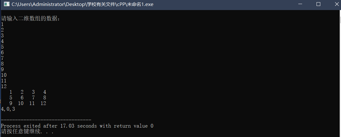 3、 调试程序:在二维数组中,若某一位置上的元素在该行中最大,而在该列中最小,则该元素即为该二维数组的一个鞍点。要求从键盘上输入一个二维数组,当鞍点存在时,把鞍点找出来。
