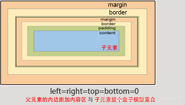 如果left=right=top=bottom=0,父元素的内边距加内容区与子元素整个盒子模型重合