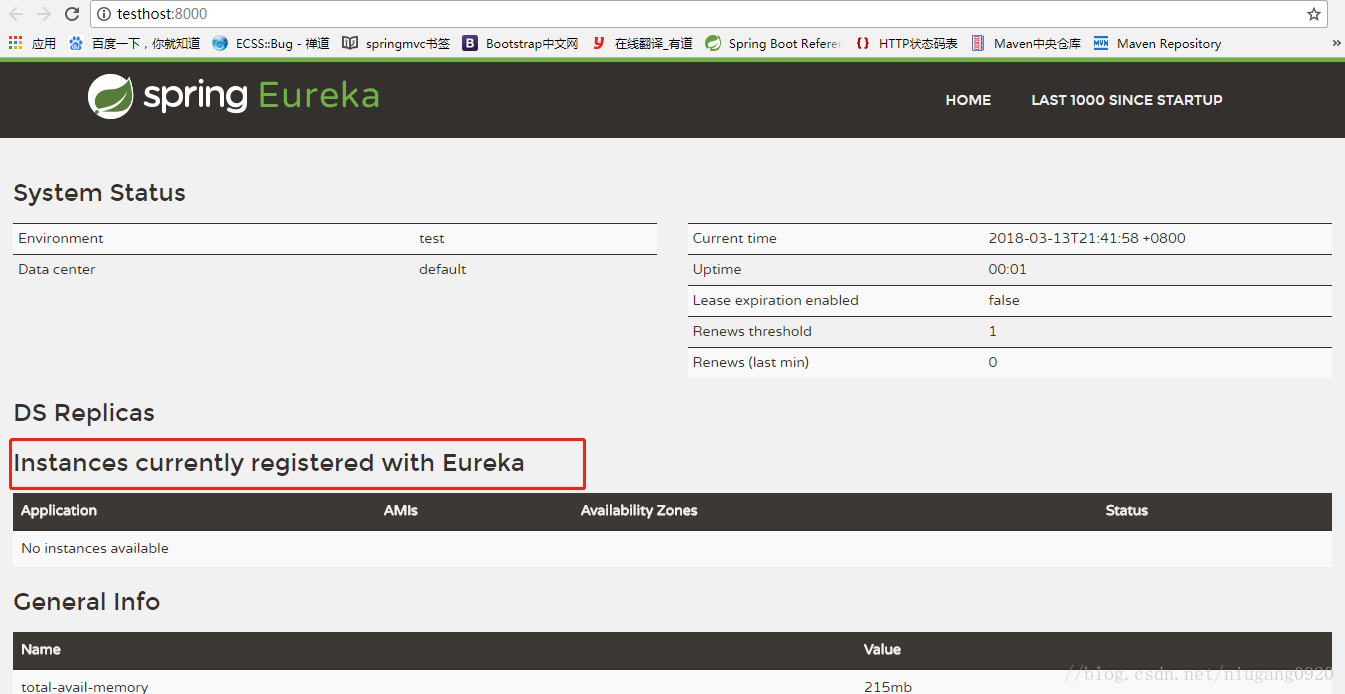 Instance currently registered with Eureka 为空,说明当前还没有注册任何服务