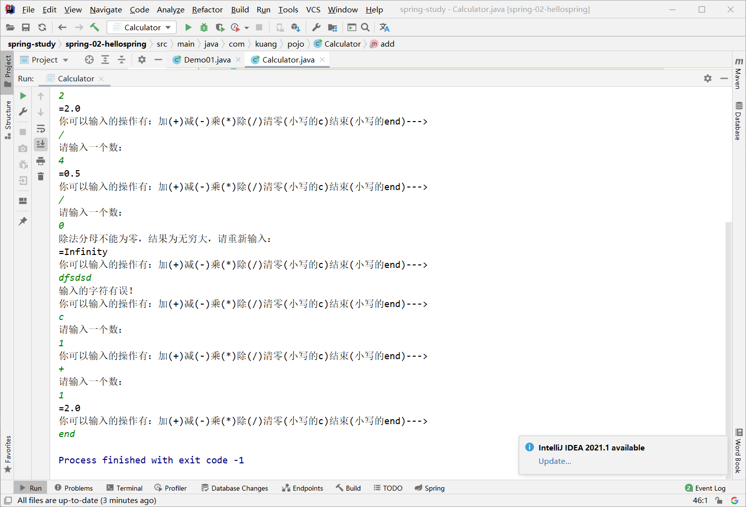 System.out.println("除法分母不能为零,结果为无穷大,请重新输入:");