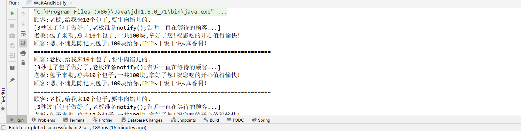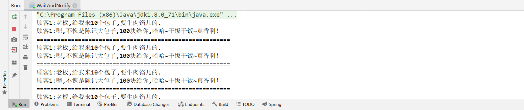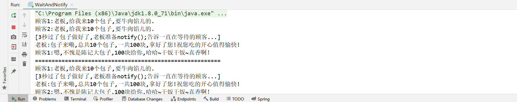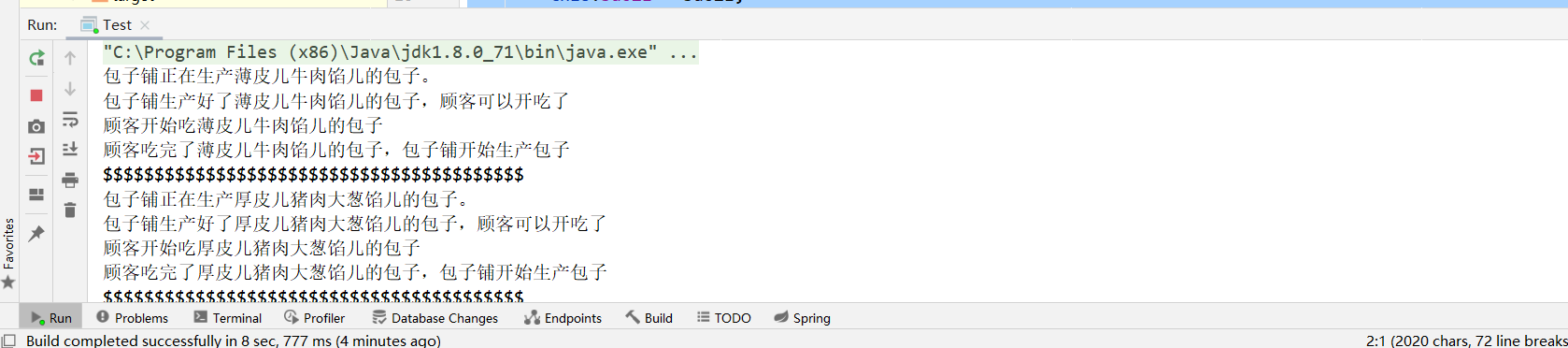 运行结果:两种馅儿的包子交替生产并且交替被吃~😂😂😂