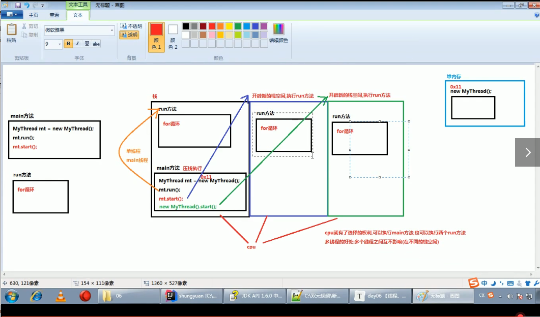 - 一种是将类声明为Thread的子类------------------->该子类应该重写Thread类的run方法,接着该子类就可以分配并启动该子类的实例。