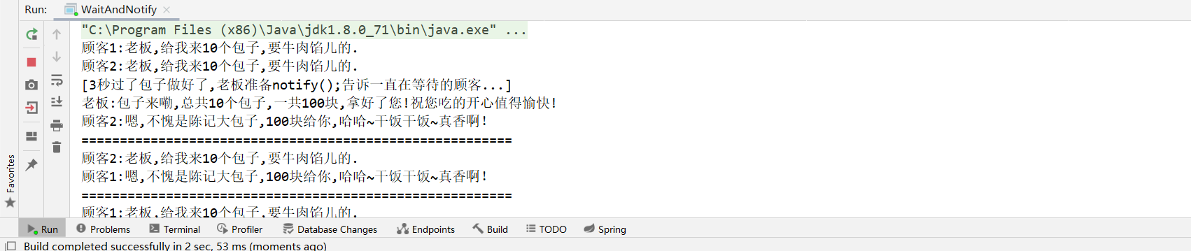 System.out.println("顾客2:嗯,不愧是陈记大包子,100块给你,哈哈~干饭干饭~真香啊!");