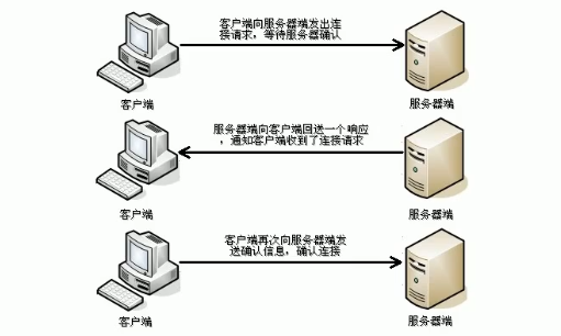 - 第三次握手,客户端再次向服务器端发送确认信息,确认连接。整个交互过程如下图所示。