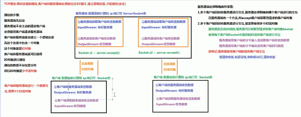 1.客户端和服务器端进行交互,必须使用socket中提供的网络流,不能使用自己创建的流对象