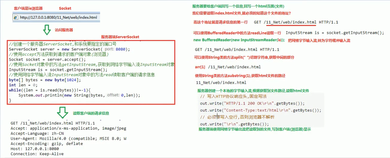 - 服务端︰java.net.serverSocket类表示。创建serverSocket对象,相当于开启一个服务,并等待客户端的连接。