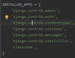 第二步:在项目终端新建应用: python manage.py startapp classroom