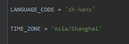 3、将LANGUAGE_CODE和TIME_ZONE设置为中国区域