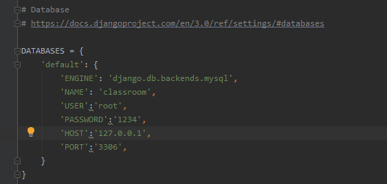 需对DATABASES进行如上图的修改 指定库、用户、密码等