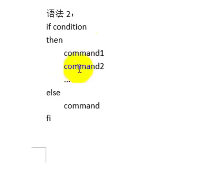 如果if里面的条件(condition)成立,那么(then)就执行command1,command2