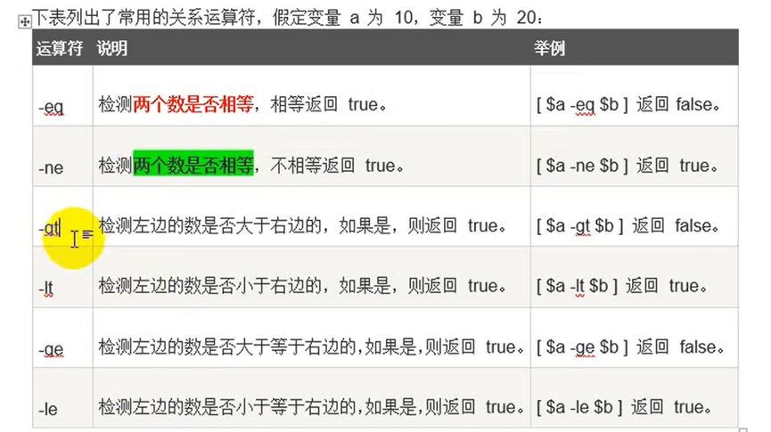 注意:条件表达式要放到方括号中间,并且要有空格,例如:【$a==$b】是错误的,必须写成【 $a == $b 】