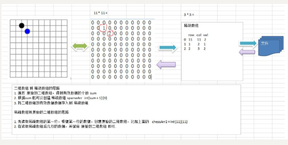 /*思路:1、遍历数组得到非零数值的个数,从而确定稀疏数组的大小,创建稀疏数组