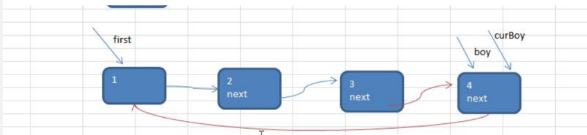 当我们后面创建的节点,依次添加到这个环形链表中,定义一个辅助变量temp指向first;