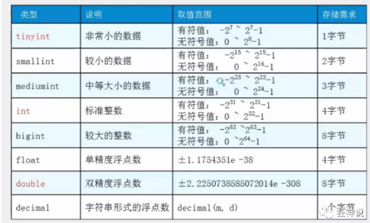 数据库的列类型