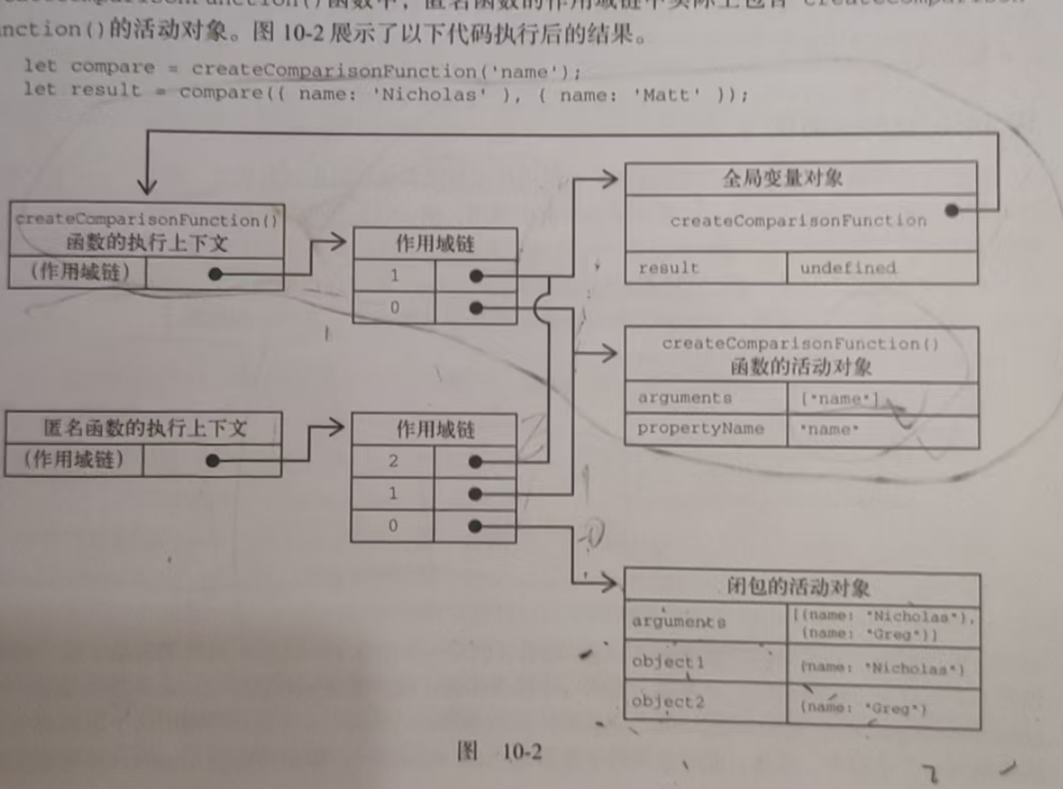 在调用一个函数时,会为这个函数调用创建一个执行上下文,并创建一个作用域链。然后用arguments,和其他命名参数来初始化这个函数的活动变量。外部函数的活动对象是内部函数作用域上的第二个对象。这个作用域链一直向外串起所有包含函数的活动对象,直到全局执行上下文才终止