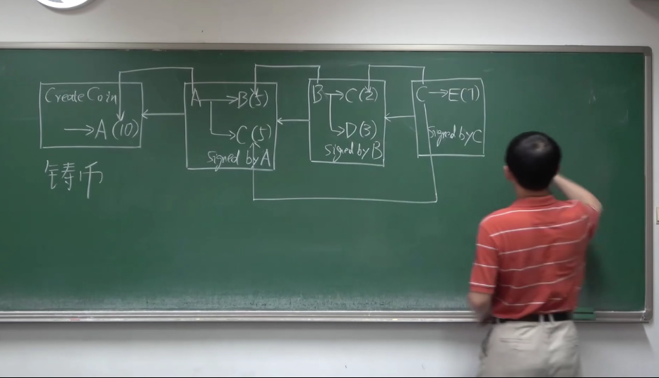 所有结点都需要A的公钥来验证转账的合法性,还要验证coin一路上的公钥能不能对的上,即是不是A,还是B‘伪造交易