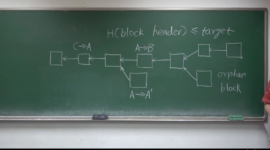 不在最长合法链,如果A->A'可,那么回滚,不可接收,应扩展在最长合法链