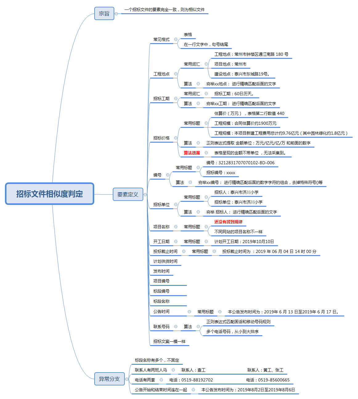 1、每一个标书都有N个要素:时间,地点,人物,金额等等,逐个分析,哪个是必须的,它出现的方式有多少种