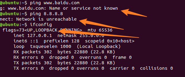 Ubuntu ifconfig 出现ping不通、<UP,LOOPBACK,RUNNING> 解决办法