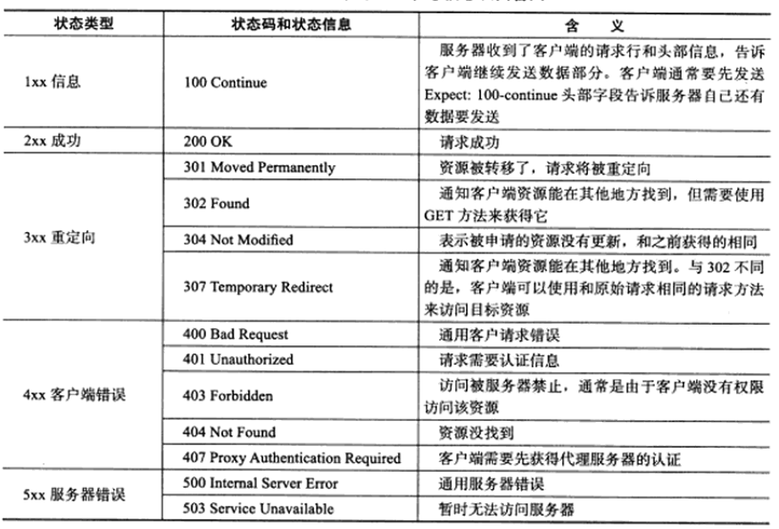 HTTP状态码含义表: