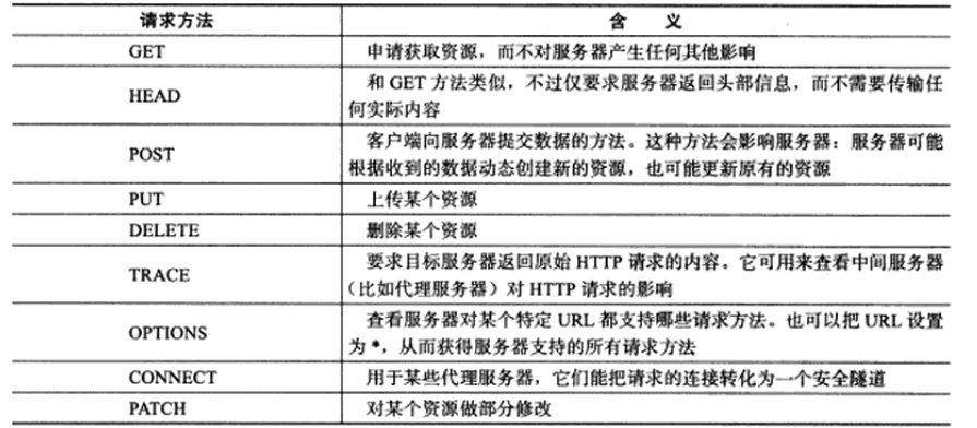 HTTP请求方法表:
