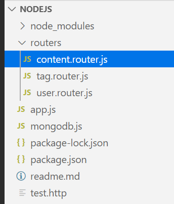 2:创建content.router.js tag.router.js user.router.js三个js文件