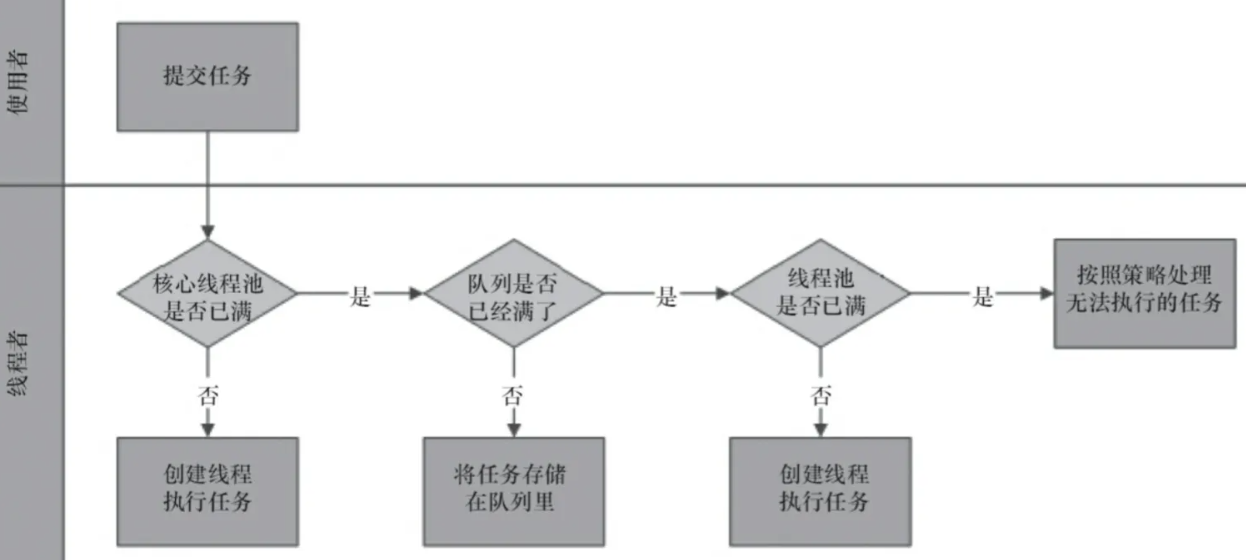 - 核心线程数以内的任务:如果线程池中的线程数量小于核心线程数,线程池会创建新线程来执行任务,即使存在空闲线程。