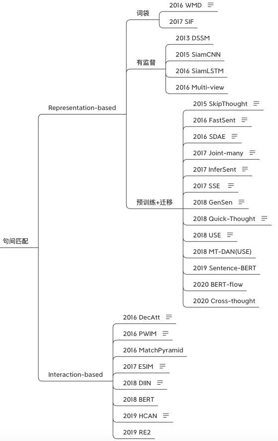 来源:21个经典深度学习句间关系模型|代码&技巧 - 忆臻的文章 - 知乎 https://zhuanlan.zhihu.com/p/358260721